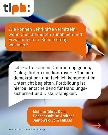 In der aktuellen Podcast-Folge mit:mischen mit Dr. Andreas Jantowski, Leiter des ThILLMS, sprechen wir über: Lehrkräfte als Vermittler:innen, demokratische Streitkultur im Klassenzimmer und die Bedeutung von Fortbildung für mehr Handlungssicherheit.