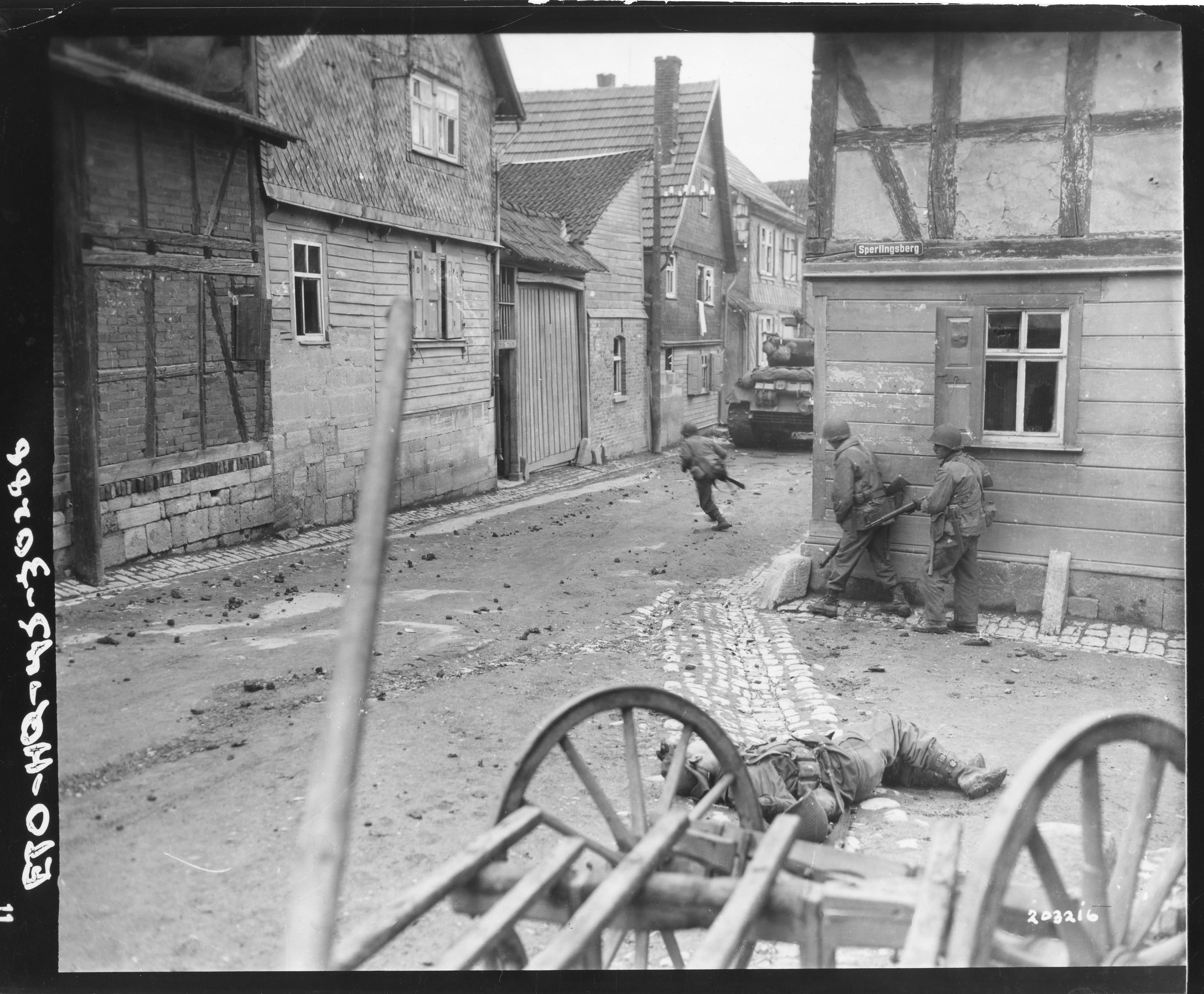 Den „Anfang vom Ende“ markierte das Überschreiten der Landesgrenze durch alliierte Truppen am 1. April 1945, als erste amerikanische Verbände von Hessen aus nach Thüringen vorstießen. Ihnen stand eine bunte Mischung aus abgekämpften Einheiten der Wehrmacht und Waffen-SS gegenüber, verstärkt durch die zumeist nur dürftig ausgebildeten und bewaffneten Milizen des Volkssturms. Die deutsche Luftwaffe griff nur noch vereinzelt in die Kämpfe ein, während alliierte Kampfflugzeuge den Vormarsch ihrer Bodentruppen durch zahlreiche Angriffe unterstützten. Angesichts der amerikanischen Überlegenheit machte die Besetzung Thüringens rasche Fortaschritte. Mühlhausen und Suhl wurden am 5. April befreit, Eisenach folgte am Tag darauf. Vereinzelt kam es noch zu harten Kämpfen, etwa am 7. April bei Struth, wo ca. 250 deutsche und 50 amerikanische Soldaten ums Leben kamen. Zudem starben zahlreiche Zivilisten, die bei den Gefechten ins Kreuzfeuer gerieten. Mehr als 600 deutsche Soldaten kapitulierten. Nachdem der Frontverlauf sich einige Tage wenig verändert hatte, nahm der amerikanische Vormarsch ab dem 10./11. April erneut Tempo auf. Am 12. April wurden Erfurt und Weimar befreit, zwei Tage darauf Zeitz. Am 16. April endeten die Kämpfe auf thüringischem Boden, abgesehen von einzelnen Zusammenstößen mit versprengten deutschen Truppen. Drei Wochen darauf beendete die Kapitulation des Deutschen Reiches den Zweiten Weltkrieg in Europa. Die amerikanische Präsenz in Thüringen währte bis Anfang Juli, als die Rote Armee gemäß den vereinbarten Besatzungszonengrenzen die Kontrolle über das Gebiet übernahm.